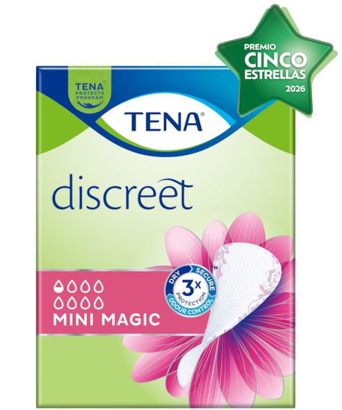 TENA Discreet Mini Magic es el protegeslip más pequeño de nuestra gama, pero ofrece una protección increíble ante las pequeñas pérdidas de orina y el goteo ocasional. Este pequeño protegeslip de gran absorción para la incontinencia urinaria utiliza la tecnología microPROTEX™ para atrapar rápidamente el líquido en su interior como por arte de magia. Es tan delgado que apenas notarás que lo llevas puesto, por eso puedes usarlo cada día para sentirte segura ante las pequeñas pérdidas de orina.