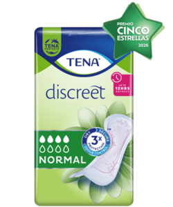 TENA Discreet Normal ofrece protección discreta y segura para las pérdidas de orina moderadas. Esta suave compresa, con laterales elásticos, se adapta perfectamente al cuerpo y está diseñada para mujeres con vejiga hiperactiva, para que puedan disfrutar de máxima absorción y discreción cada día. Gracias a la triple protección de TENA, atrapa eficazmente los escapes, el olor y la humedad para garantizar una sensación de sequedad hasta 12 horas. TENA Discreet Normal es la solución ideal para los escapes de orina, aportándote la seguridad que necesitas y la discreción que deseas.
