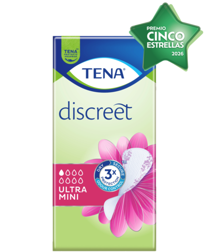 Si tienes pequeñas pérdidas de orina y algún que otro goteo, prueba el protegeslip TENA Discreet Ultra Mini para la incontinencia. Su diseño superfino, pero muy absorbente, te ofrece una protección discreta y segura. Tiene el mismo tamaño que un protegeslip normal, pero es mucho más absorbente gracias a la tecnología microPROTEX™, que atrapa rápidamente el líquido. Este protegeslip fino y seguro para las pérdidas de orina evita las fugas y el olor al instante, para que te sientas fresca todo el día.